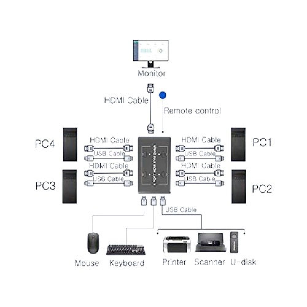لمشاركة 4 اجهزة كمبيوتر على شاشة واحدة يستخدم فقط كيبورد واحد وماوس واحد بمنفذ USB