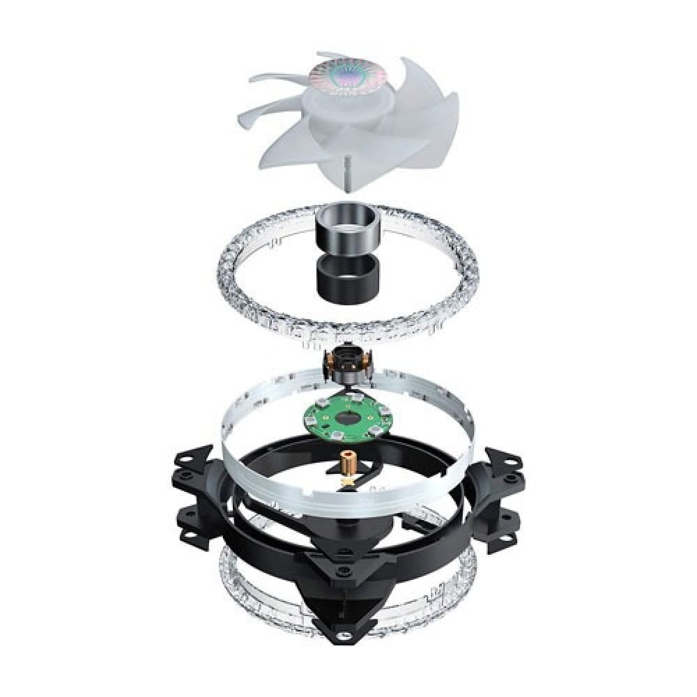 إضاءة RGB ثلاثية الحلقات القابلة للتصوير - يتم ترتيب 24 مصباح LED RGB القابل للتصوير بشكل موحد حول تصميم الحلقة البلورية مع 6 مصابيح LED إضافية قابلة للمعالجة على محور المروحة.